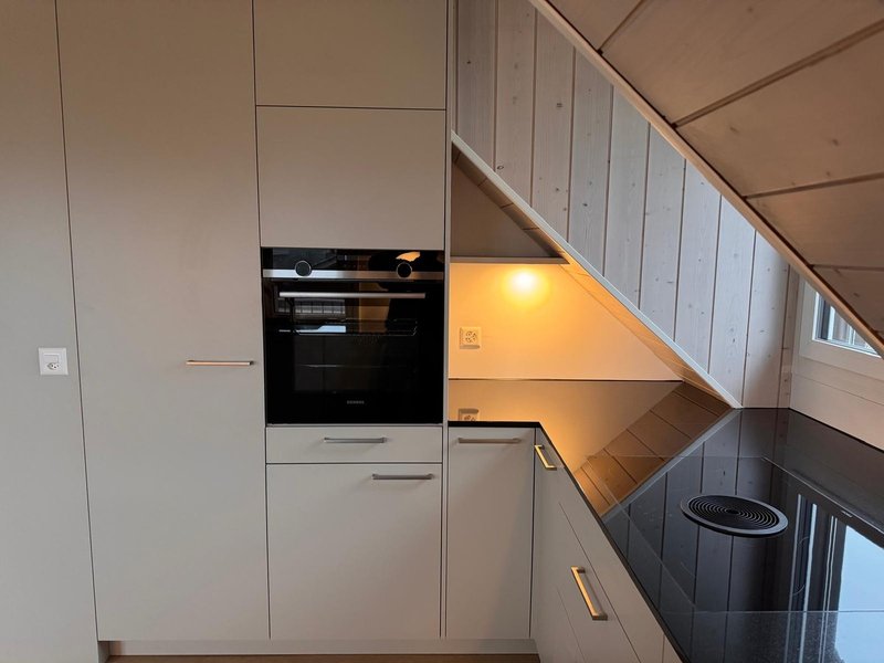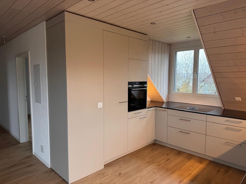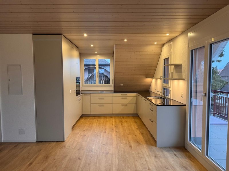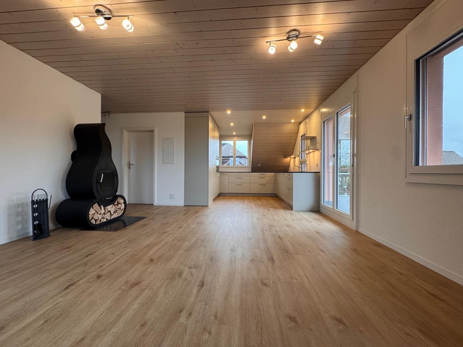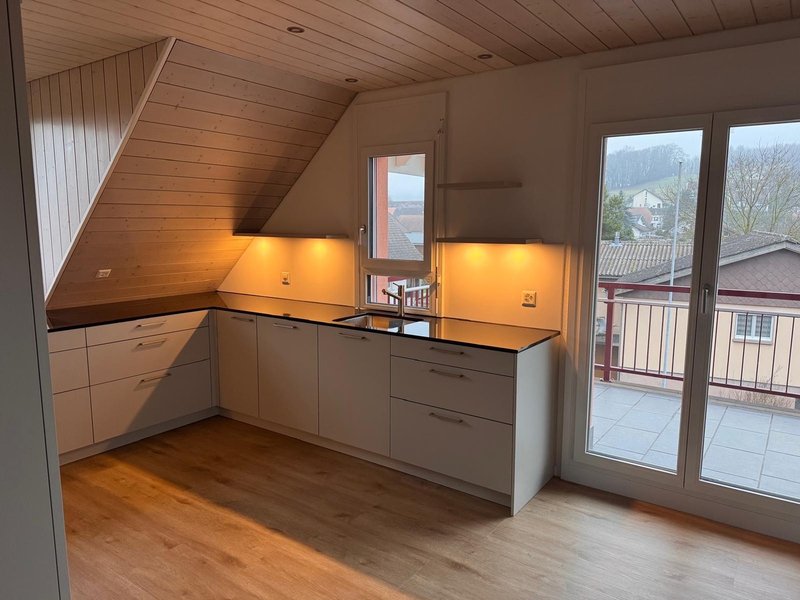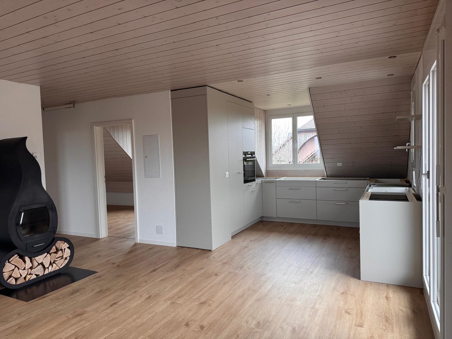 In unmittelbarer Nähe zum Bahnhof erwartet Sie eine neu renovierte 4,5-Zimmer-Wohnung mit modernster Ausstattung. Die Wohnung besticht durch eine neue Küche, neue Bodenbeläge, neue Fenster und einen gemütlichen Kaminofen. Ein grosszügiger Estrich mit ca. 50m2 ist von der Wohnung aus begehbar. Zusätzlich verfügt die Wohnung über eine Waschmaschine mit Trockner.