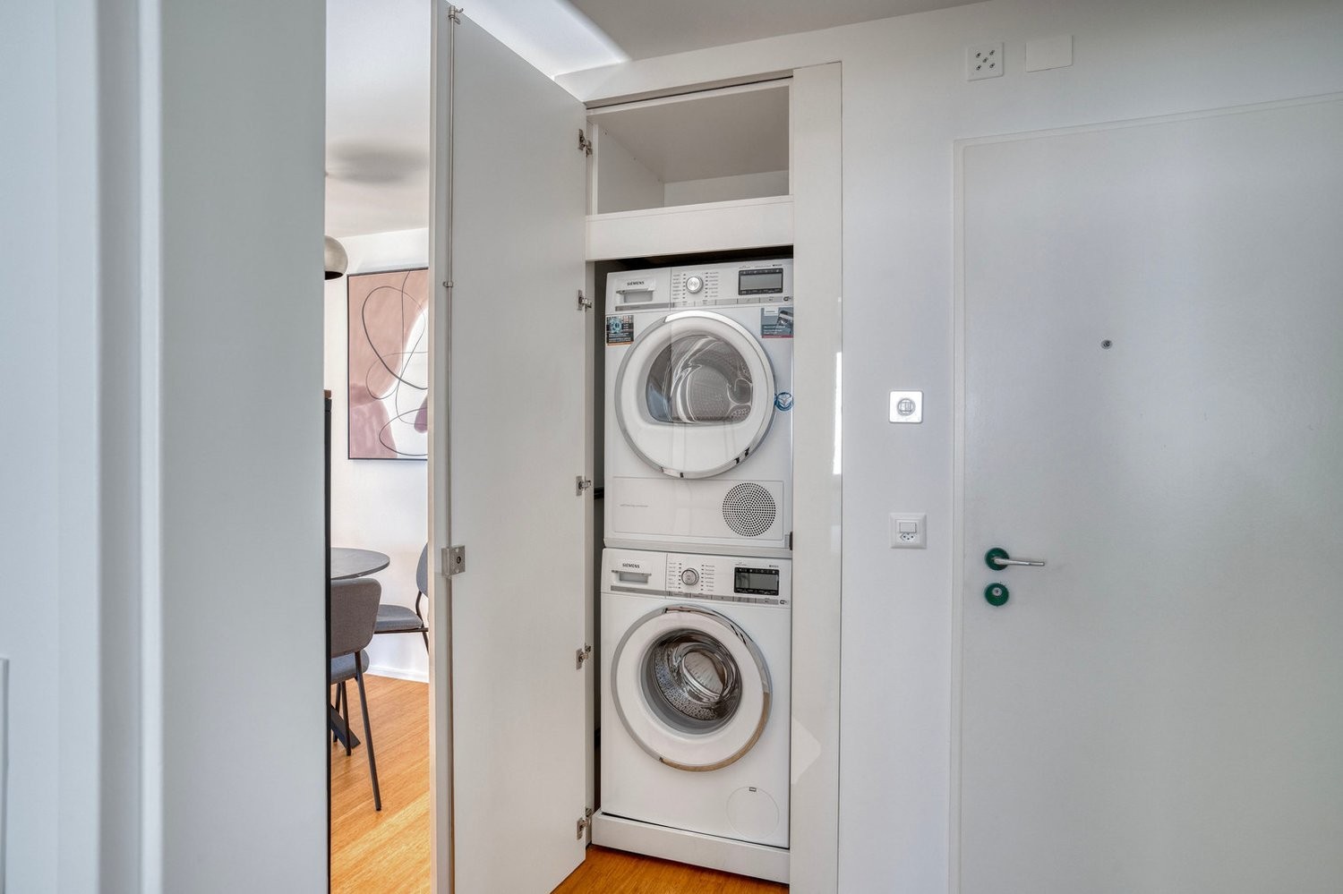Durchdachtes Design mit maßgeschneiderten Oberflächen und moderner Einrichtung, und eine voll ausgestattete Küche, Sie werden das „Ich bin zu Hause“-Gefühl mit diesem Blueground Wohnung genießen. Egal, ob Sie in Ihrem schön Wohnzimmer die neuesten und besten Unterhaltungssendungen über den Smart-TV oder den kabellosen Premium-Lautsprecher streamen oder sich auf der hochwertigen Matratze ausruhen – Sie werden sich in alles verlieben, was dieses Wallisellen Wohnung zu bieten hat. Diese Wohnung bietet auch Wäscherei in der Wohnung.