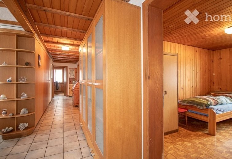 Die Wohnung besticht durch ihre wohnliche Holzverkleidung, welche sofort Wärme und Behaglichkeit ausstrahlt. Besonders hervorzuheben ist der grosszügige Balkon, der perfekte Ort, um sonnige Stunden zu geniessen und den herrlichen Blick über die Hügellandschaft und die umliegenden Berge zu erleben.