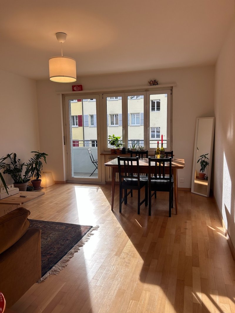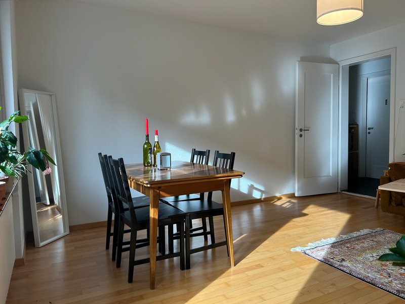 Das grosse Zimmer (ca. 18 m2) ist sehr hell und hat einen Balkon, das Bad, die Küche, die Waschküche und der Keller stehen dir natürlich zur Mitbenutzung zur Verfügung.