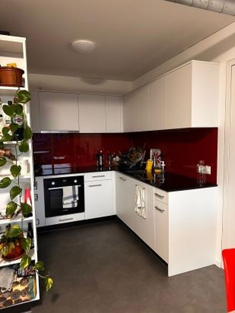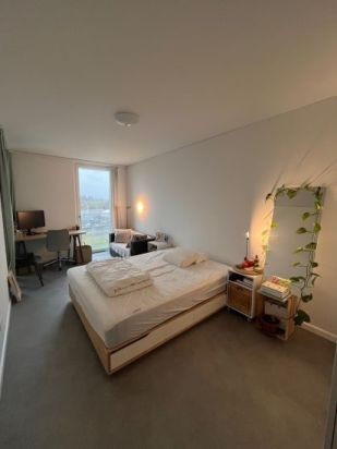 The flat has two bedrooms with separate bathrooms. It is a fully furnished apartment with a shared living room and kitchen. There are all the necessary items including the kitchenware and dishwasher. Rent includes all the utilities. It's a new apartment and we are the first tenants.