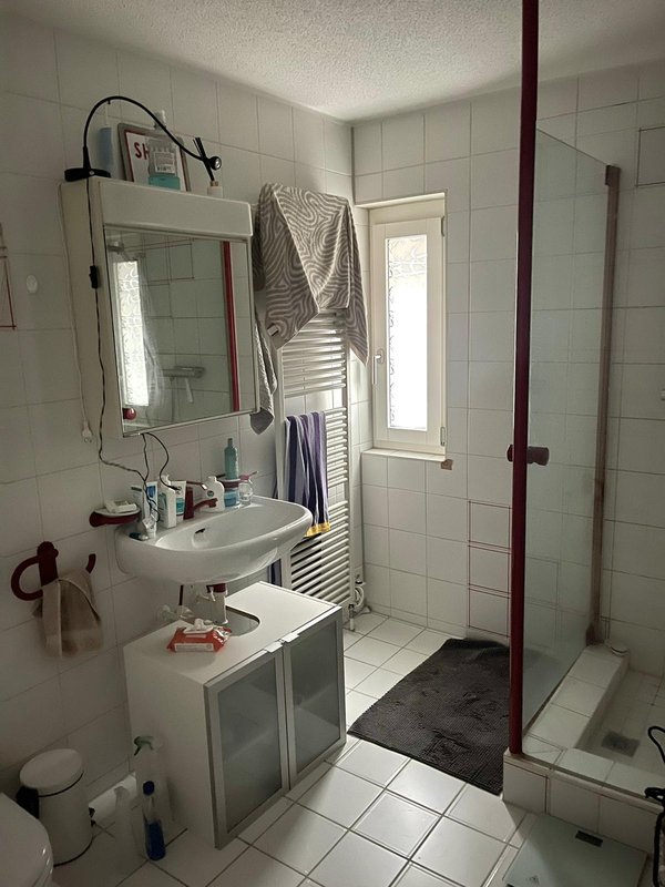 The apartment is a big flat, around 120 m2, it has three bedroom, one guest room as another additional bedroom, three bathrooms. Vera has one of the bathrooms in her room, you'd share the bathroom with Sabin but there's an additional small bathroom.