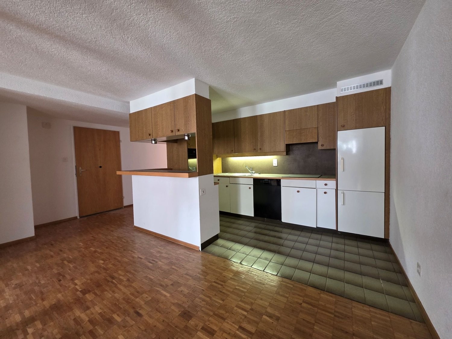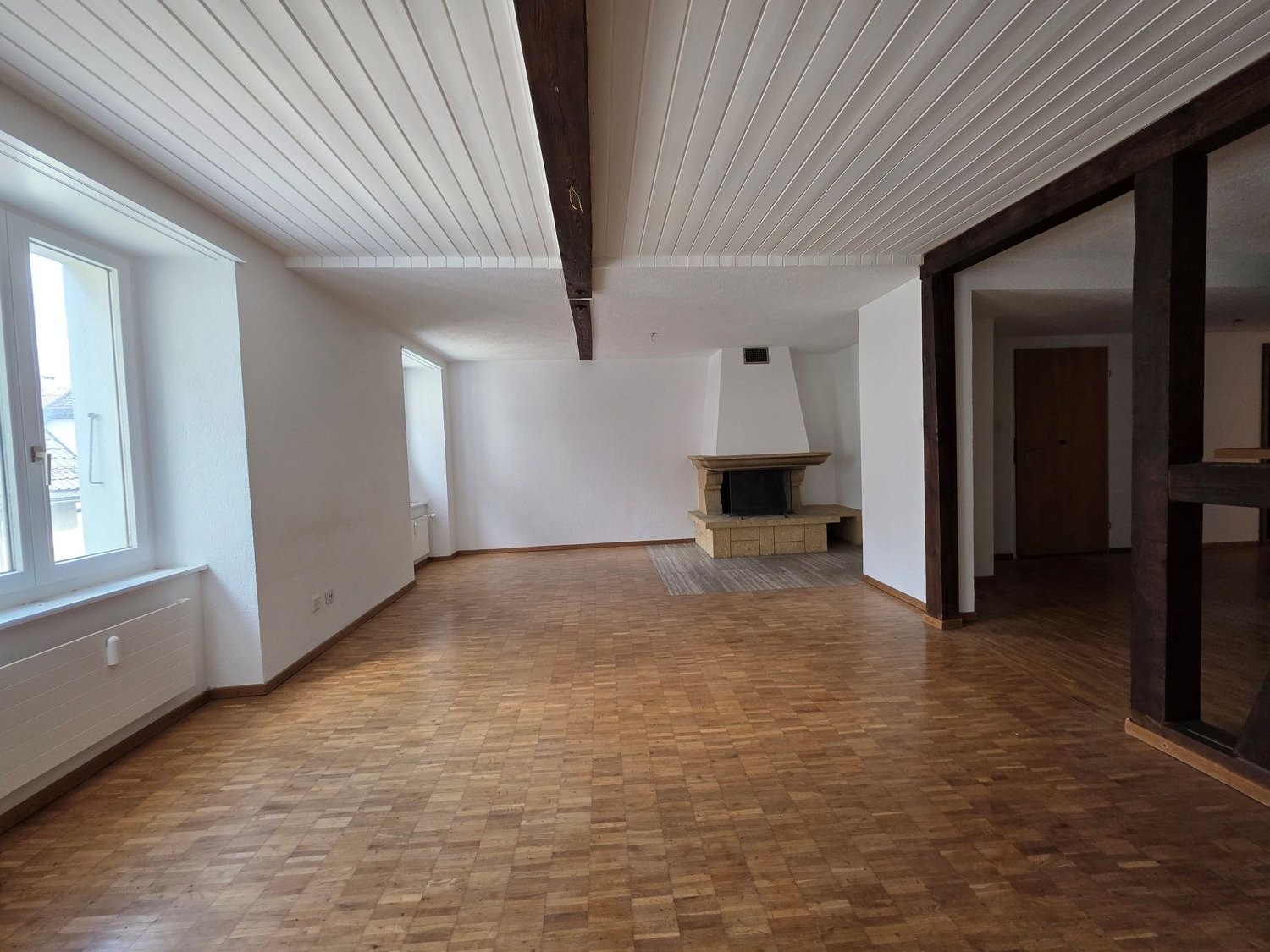 BEAU ET GRAND LOGEMENT AVEC CHEMINEE ET CACHET Cuisine agencée (cuisinière vitrocéramique, four, hotte de ventilation, frigo-congélateur, lave-vaisselle) ouverte sur coin à manger avec parquet, grand salon avec cheminée et parquet , 2 chambres avec parquet, hall avec armoires, salle de bains/WC neuve , dépendances, chauffage central, poutres apparentes .