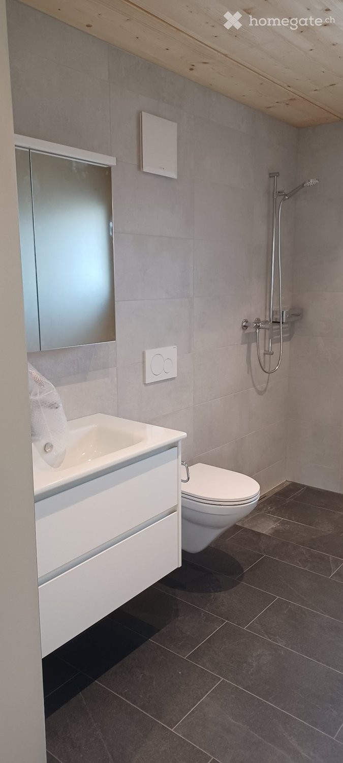 zu vermieten ab 1.April 2026 oder nach Vereinbarung, moderne 3.5 Zi-Wohnung in Neubau, 1.OG., Balkon, eigener Keller, WT, Glasfaseranschluss, PP, NR, ruhige Lage, 2min ÖV, 5min Dorf, nähe Landwirtschaftsbetrieb, Mietzins 1950.- exkl. NK (Fotos wurden in der Schlussphase des Innenausbaus aufgenommen, weshalb z.B. Türen und Duschwand noch fehlen)