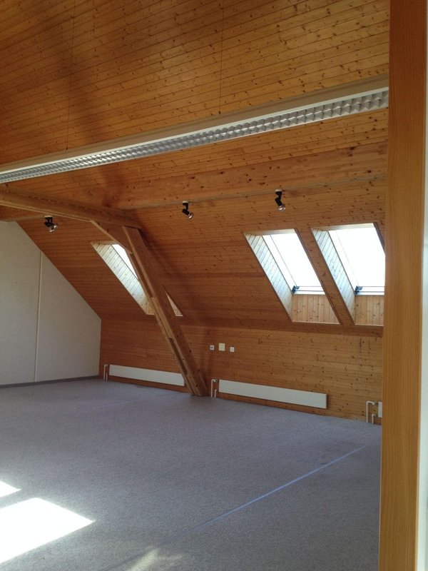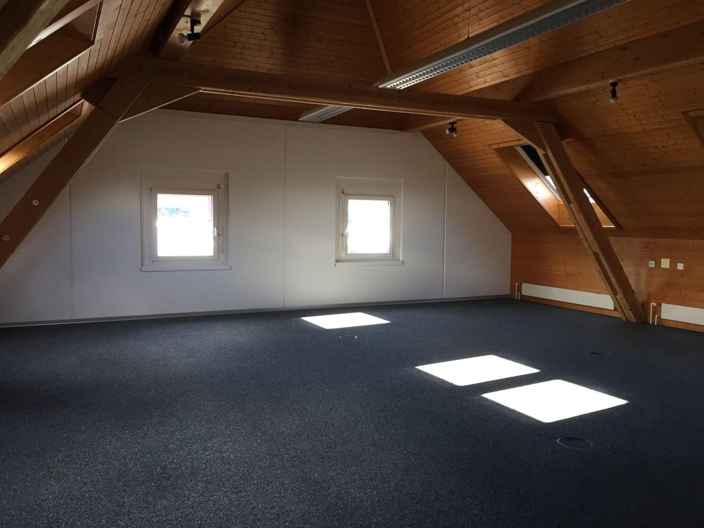 Neben einem schönen Empfangsbereich stehen im Erdgeschoss diverse Büroräumlichkeiten zur Benützung frei. Im Obergeschoss bietet der grosszügige Raum Platz für Sitzungen, Schulungen oder etwa zusätzliche Arbeitsplätze - gar ein Atelier kann eingerichtet werden.