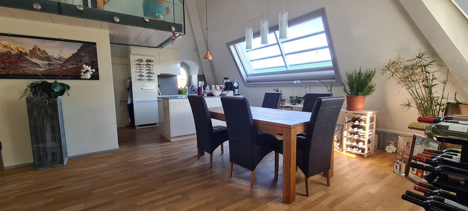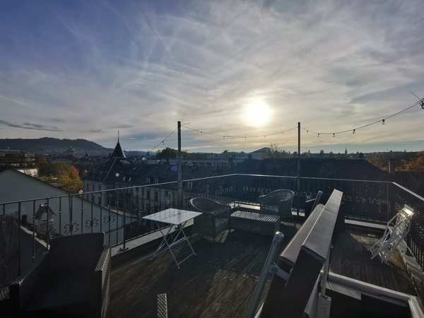 Die Wohnung verfügt über 4 grosszügige Schlafzimmer (alle nicht direkt aneinander angrenzend), 3 WC/Bäder, einen sehr grosszügigen Wohn-/Essraum mit Galerie mit Beamer/Leinwand und das Highlight: die höchstgelegene Dachterrasse der Lorraine!!!