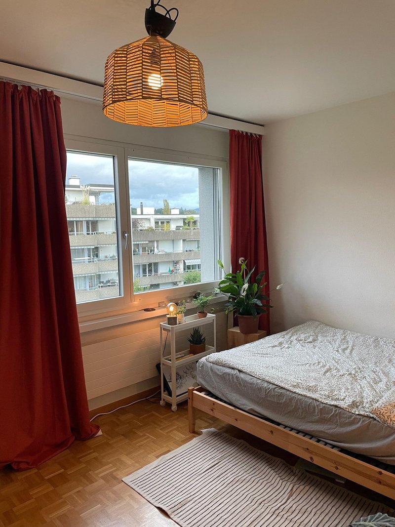 Das Zimmer (ca. 13 m2) ist nordöstlich ausgerichtet (Morgensonne). Michael zieht Ende März aus, nach Vereinbarung kann das Zimmer aber auch später übernommen werden. Ein 3-teiliger Kleiderschrank kann auf Wunsch gratis übernommen werden.
