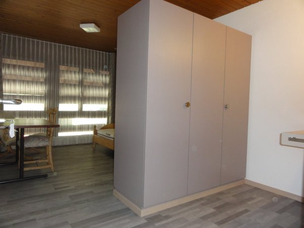 Wir vermieten in unserer Liegenschaft ein möbliertes Zimmer. Die Ausstattung des Zimmers beinhaltet ein Bett mit Matratze, Tisch und Stuhl, Büchergestell mit Bettzeugkasten und ein Einbauschrank mit Kleiderstange und Tablaren. Tages- und Nachtvorhänge sind vorhanden.