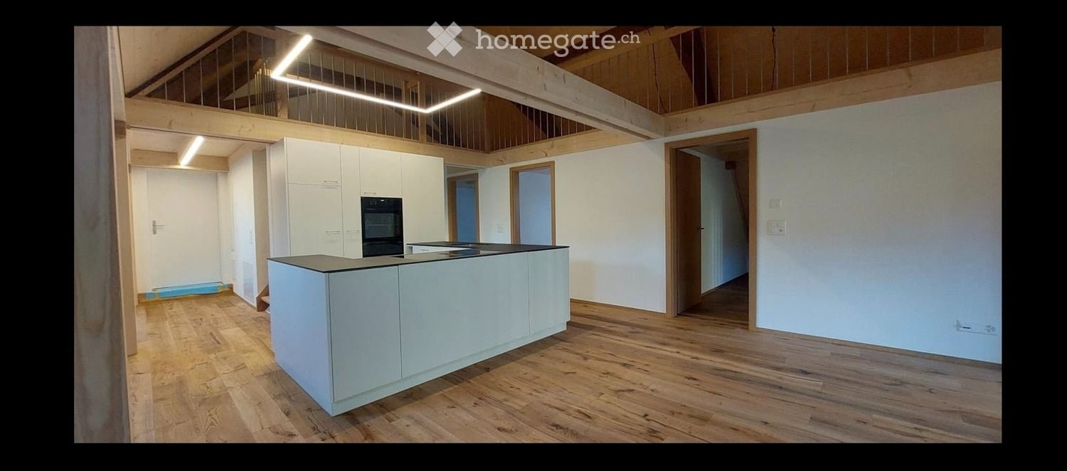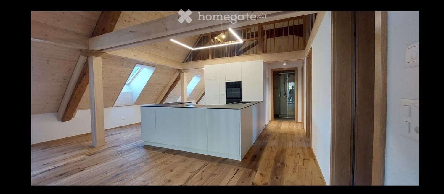 Diese 4.5-Zimmer-Dachwohnung umfasst 110 m² und befindet sich im 2. Obergeschoss. Sie verfügt über eine neue, moderne Küche, eine eigene Waschmaschine sowie eine Galerie, die zusätzlichen Raum bietet.