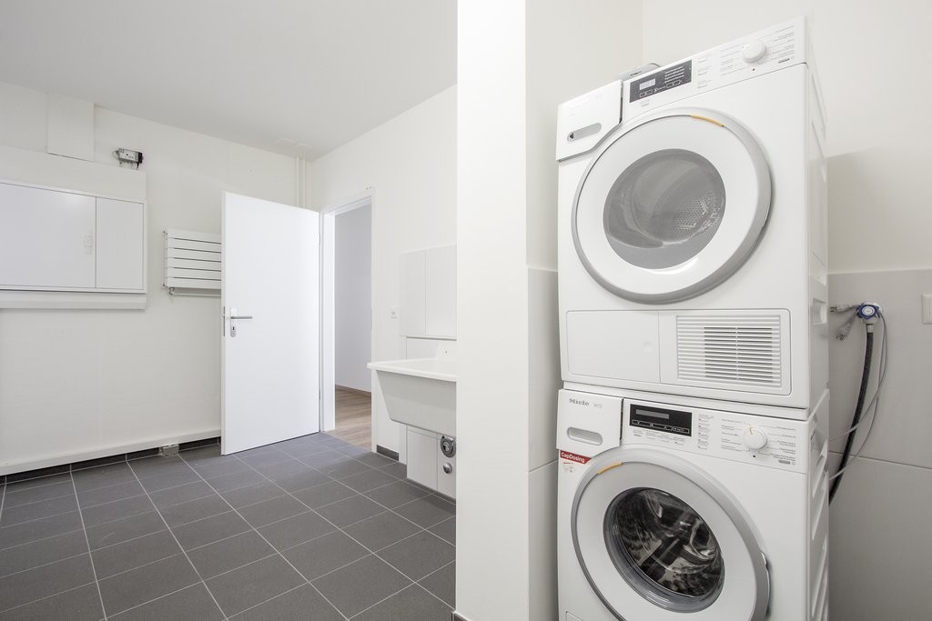 Hauswirtschaftsraum mit Waschmaschine und Tumbler