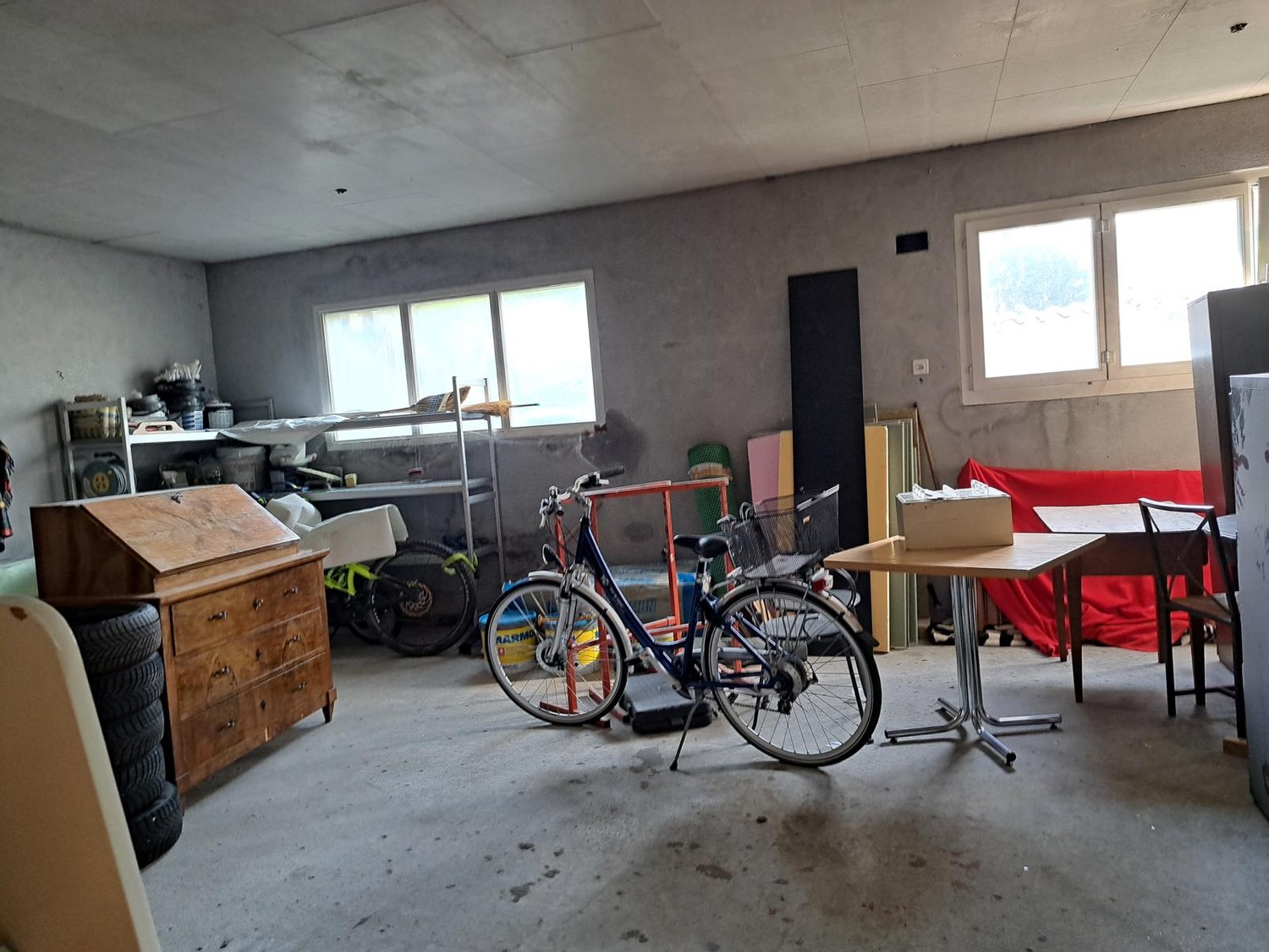 Im Erdgeschoss befindet sich der frühere Gewerbeteil (ehemalige Bäckerei), eine grosszügige Garage (ca. 50 m²), ein Veloraum/Hobbyraum (ca. 45 m²) sowie diverse Nebenräume.