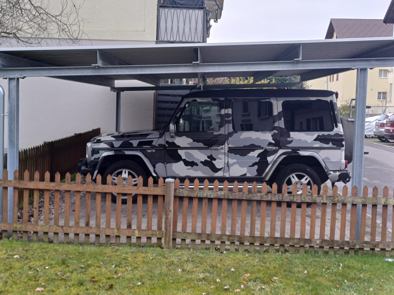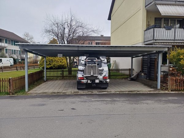 Die Zufahrt ist leicht zugänglich, die Anlage sauber und gut strukturiert. Dank der Überdachung bleiben Fahrzeuge das ganze Jahr über geschützt.