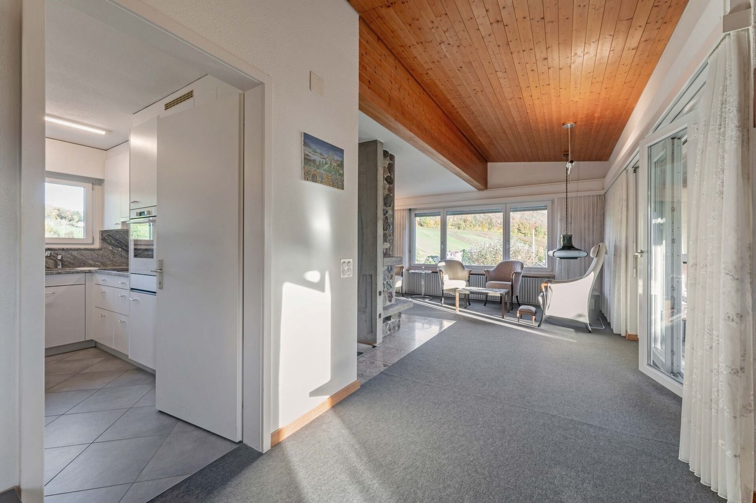 Das 6.5-Zimmer-Einfamilienhaus mit einer Nettowohnfläche von rund 140 m² ist der perfekte Ort, um Ruhe und Natur zu geniessen und gleichzeitig Raum für kreative Entfaltung zu bieten. Das Haus ist bezugsbereit und eignet sich für eine sanfte, etappierte Renovation - steuerlich vorteilhaft planbar.