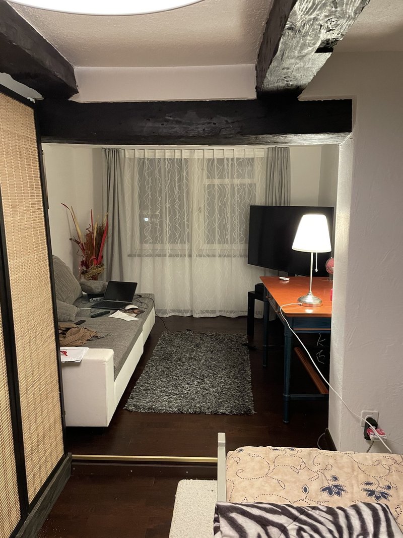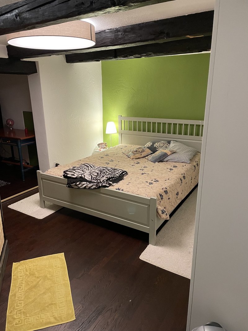auch ein Wohnbereich (Couch und Schreibtisch)sowie ein mit Trennwand abgetrenntes Badezimmer( Dusche und Waschbecken)und eine eigen Toilette in separaten Raum direkt neben dem Zimmer. Zudem gibt es einen kleinen Abstellraum. Küche und Waschkeller ,werden mit 3 weiteren Mitbewohner im Haus geteilt. Jegliche Küchengeräten diesen Bereichen können mitbenutzt werden.