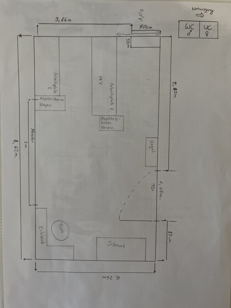 Toiletten dürfen mitbenutzt werden befinden sich ausserhalb des Raums im Gang.