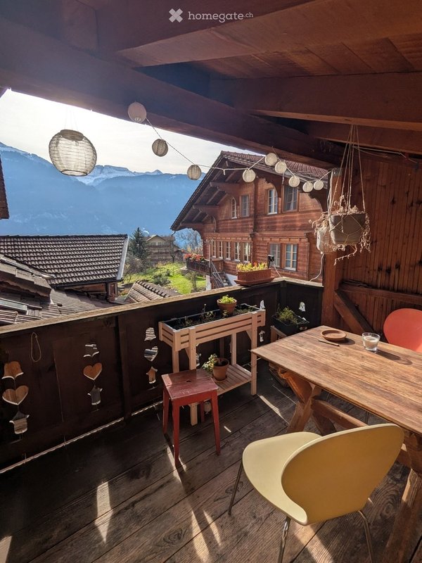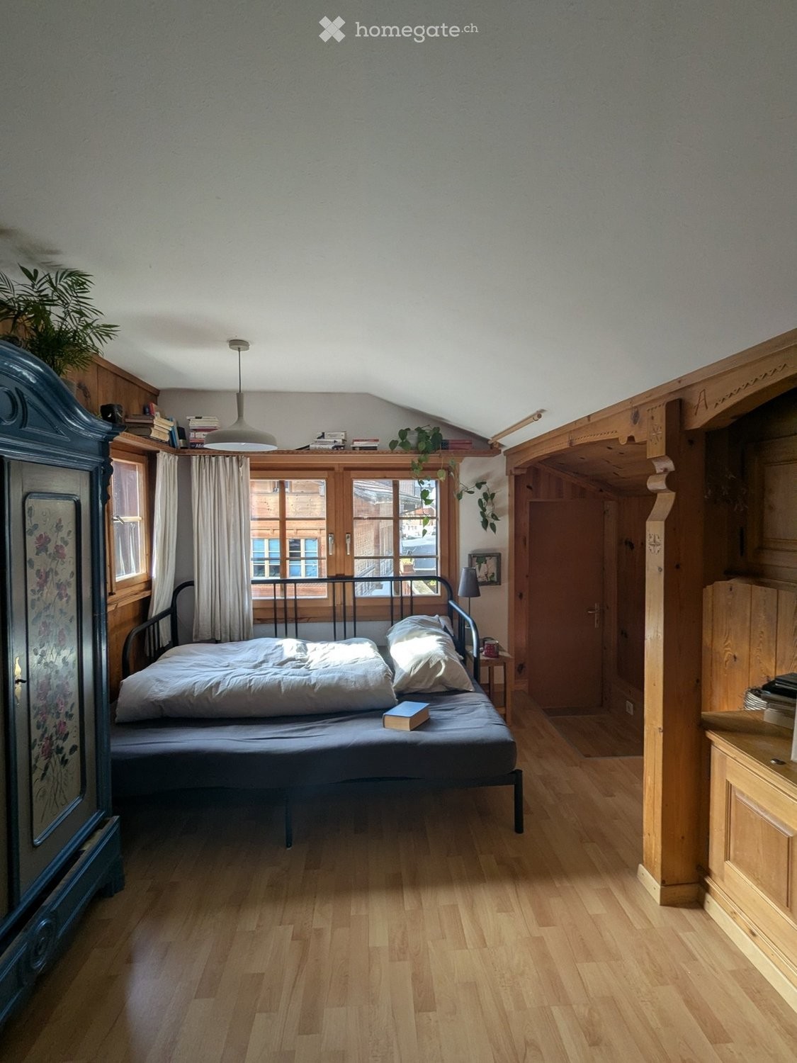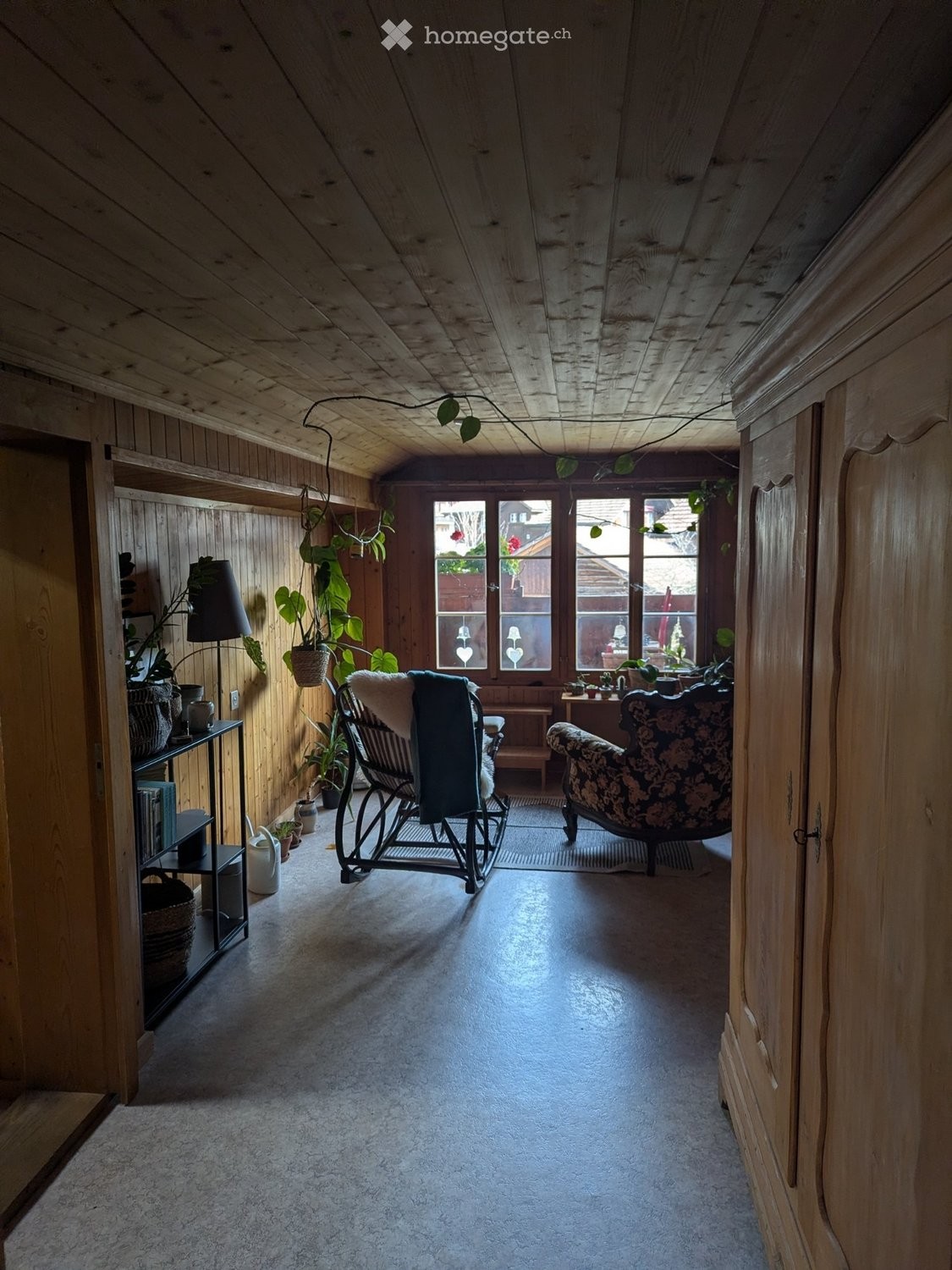 Zimmer während 6 Wochen in Brienz zu vermieten, vom 11. Januar-20. Februar 2026. Das Zimmer ist Teil einer grösseren, alten aber sehr charmanten Wohnung, es gibt ein weiteres (bewohntes) Schlafzimmer, zwei Wohnzimmer, zwei Balkone, Küche und Badzimmer. Die Wohnung ist Teil eines Holzhauses, das wunderschön und heimelig ist, und alle Vor- und Nachteile eines alten Gebäudes mit sich bringt. Im Winter wird mit Holz geheizt.