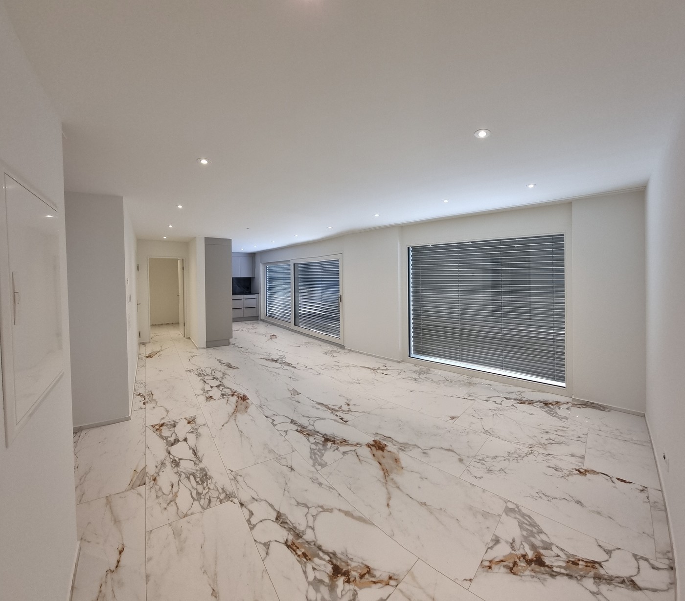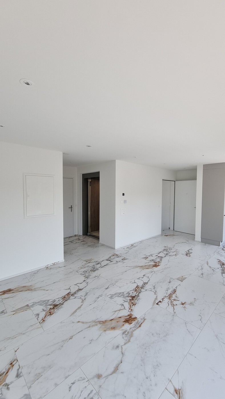 Die Wohnung besticht durch ihre Helligkeit und Offenheit. Grosse Schiebefenster und feste Fenster im Wohnzimmer lassen das Tageslicht in jeden Winkel strömen. Und falls Sie am Abend zusätzliches Licht benötigen, sorgen spezielle LED-Spots in der Decke für die ideale Beleuchtung.