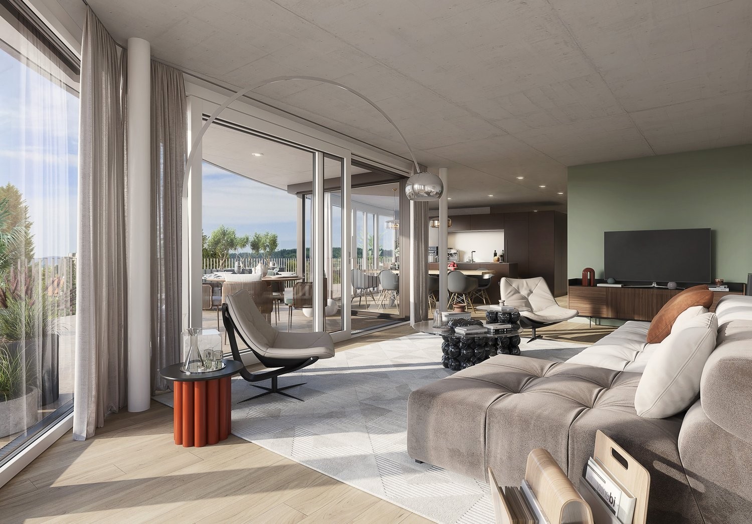 Ein Neubau mit einzigartigem Charakter und höchstem Wohnkomfort erwartet Sie! Das Gebäude besticht durch seine elliptische Form mit Sichtbeton und grosszügigen, umlaufenden Terrassenflächen auf allen drei Geschossen. Eingebettet in einen riesigen Park mit altem Baumbestand, Sonnenwiese und hochwertiger Umfriedung geniessen Sie eine zentrale und dennoch ruhige Lage, umgeben von Quartierstrassen und nur zwei Villen. Der Bahnhof, Einkaufsmöglichkeiten und weitere Infrastruktur sind bequem erreichbar.