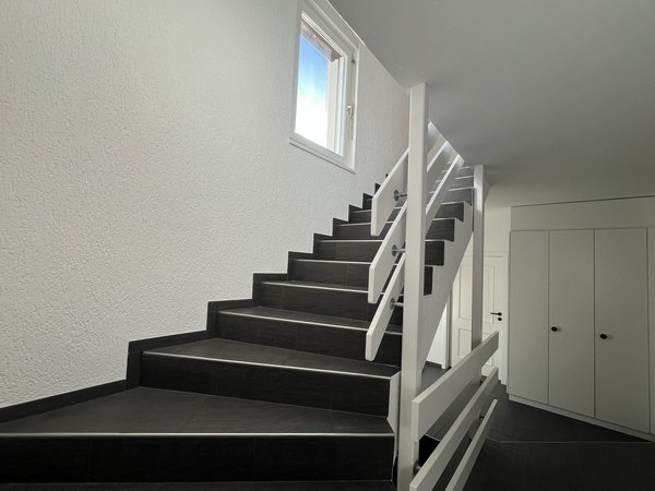 Hier befindet sich eine grosszügige Garage (36 m²), eine Waschküche mit Waschmaschine und Tumbler (11 m²) sowie ein klassischer Kellerbereich (inkl. Naturkeller / Luftschutzkeller, 43 m²). Die Entkalkungsanlage sorgt für optimale Wasserqualität und reduzierten Reinigungsaufwand, während die Ölheizung die technische Infrastruktur abrunden. Zusätzlich stehen zwei Aussenparkplätze zur Verfügung.