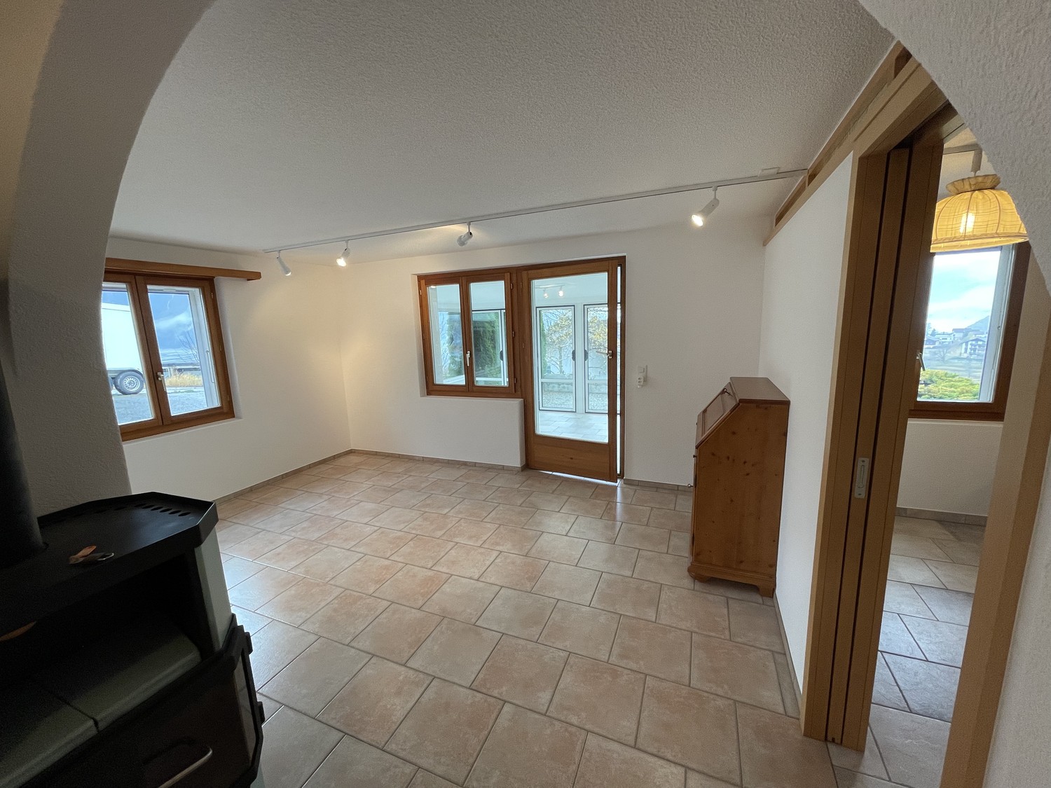Vom Wohnzimmer mit Schwedenofen gelangt man zum beheizbaren und dadurch ganzjährig benutzbaren Wintergarten, in welchem man gerne verweilt und die Aussicht geniesst.