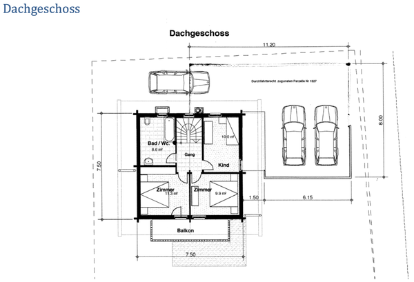 Das Auto kann entweder in der überaus grosszügigen Doppelgarage oder auf den zwei Aussenparkplätzen auf dem Garagendach geparkt werden.