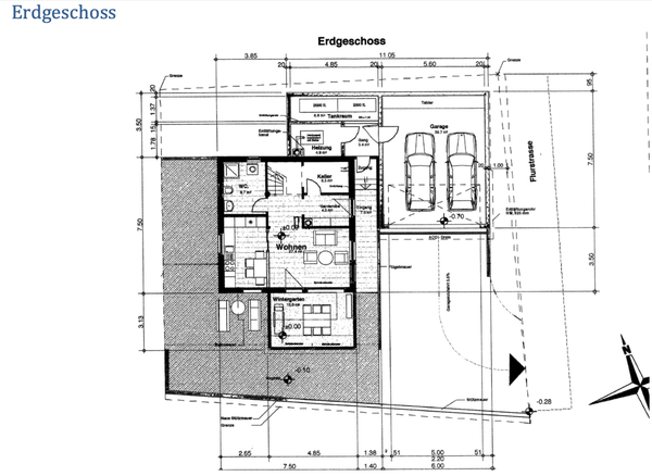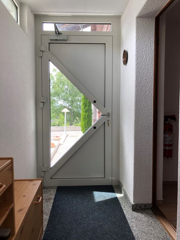 Um in den Wohnbereich zu gelangen hat man zwei Möglichkeiten: entweder direkt durch die Hauseingangs-türe oder über die grosszügige Doppelgarage.