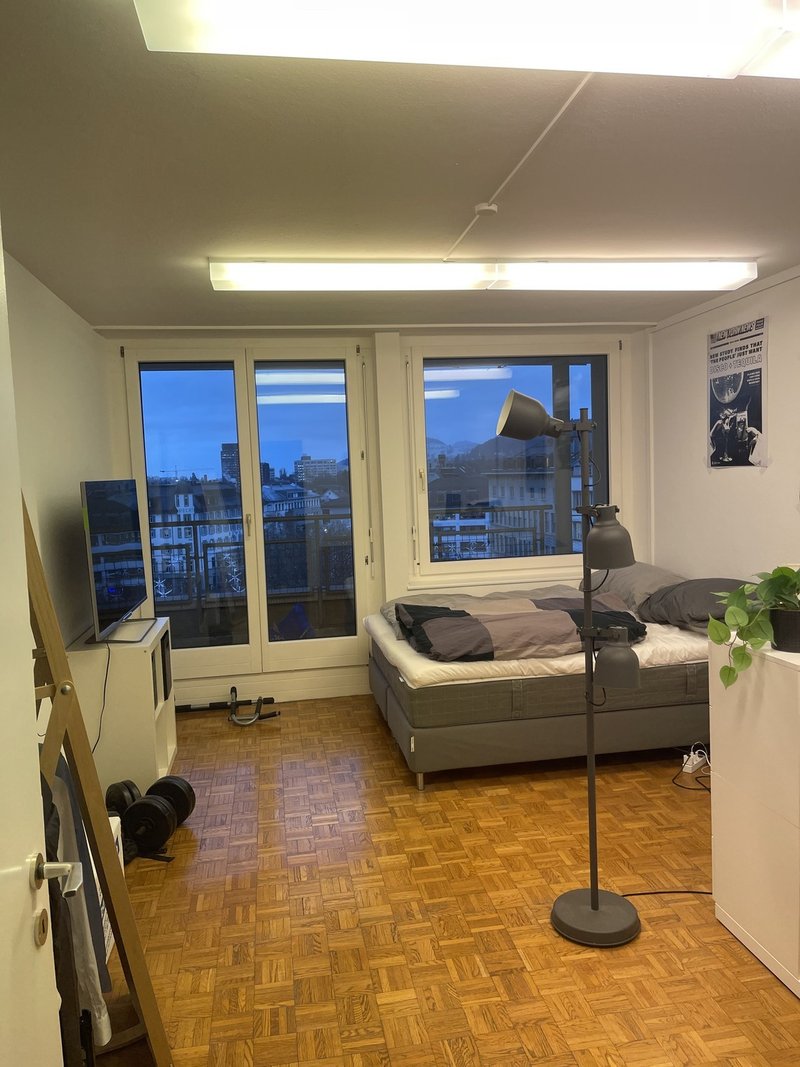 Hey there, we got a free and spacious room (19m^2) in our flat from May until end of August (potentially even October). You‘d live together with three flatmates (all 24M). We‘re pretty active as a flat - even though summer months may be a bit more quiet than usual, and would love to hear more about you! The room is furnished and could be rented as such. It‘s located very centrally above Blumenmarkt and has a busstop directly to the university about 2 mins away. The train station is around 5 mins away by foot and the university around 10mins by foot. It‘s directly at Marktplatz so possibilities to grocery shop at Marktplatz or Neumarkt are both only a couple of meters away. The appartment has lots of natural light, 4 bedrooms, 1 bath, 1 toilette, a big living room of 38 square meters, a new kitchen and a balcony all around the flat. If you‘re looking for a room in SG and a cool flat, feel free to reach out.