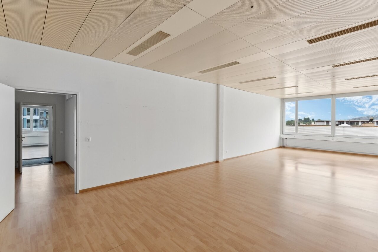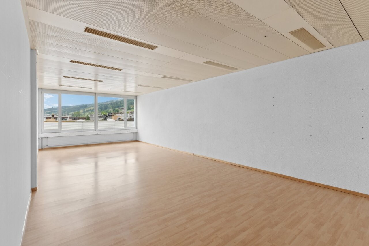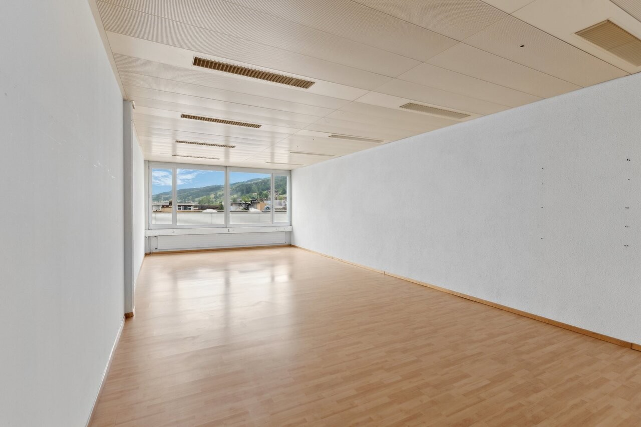 In Root steht eine helle, vielseitig nutzbare Bürofläche zur Verfügung. Der Raum überzeugt durch klare Struktur, eine angenehme Raumhöhe sowie durch die grosszügigen Fensterfronten mit Blick ins Grüne und auf die umliegende Hügellandschaft.