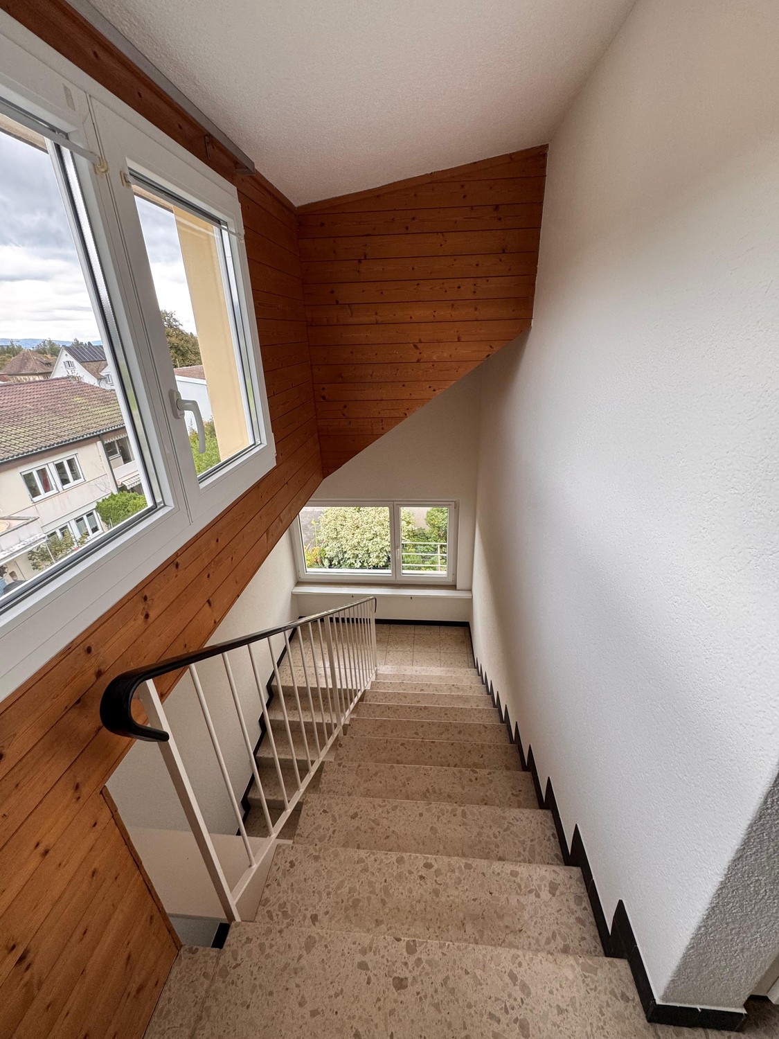 Die gesamte Wohnung wurde frisch gestrichen und der Boden in der unteren Etage wurde frisch geschliffen. Die Wohnung ist ab sofort bezugsbereit.