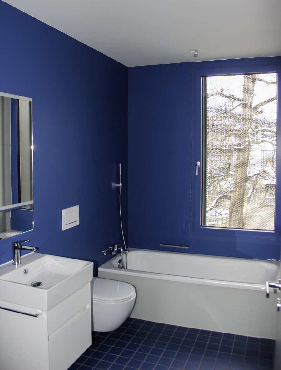 Zwei Nasszellen in frischem Design: 1 x Bad/WC [ausser EG], 1 x Dusche/WC