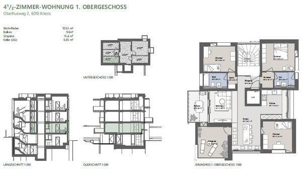 Das schmucke 4-Familienhaus liegt in unmittelbarer Nähe zum Zentrum von Kriens, mit entsprechend hervorragender Anbindung an das öffentliche und individuelle Verkehrsnetz. Trotzdem ist das Quartier sehr ruhig und grün.
