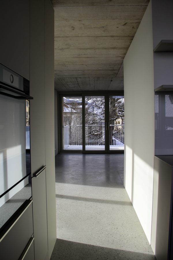 Diese Wohnung belegt die gesamte Etage des modern designten Neubaus. Der Lift führt direkt in die Wohnung. Die Aufteilung der Räume ist ebenso speziell wie raffiniert. Und die sehr wohnlichen Innenräume werden neben einem Balkon grosszügig ergänzt durch eine nach Süden und Westen ausgerichtete 4-Jahreszeiten-Loggia.