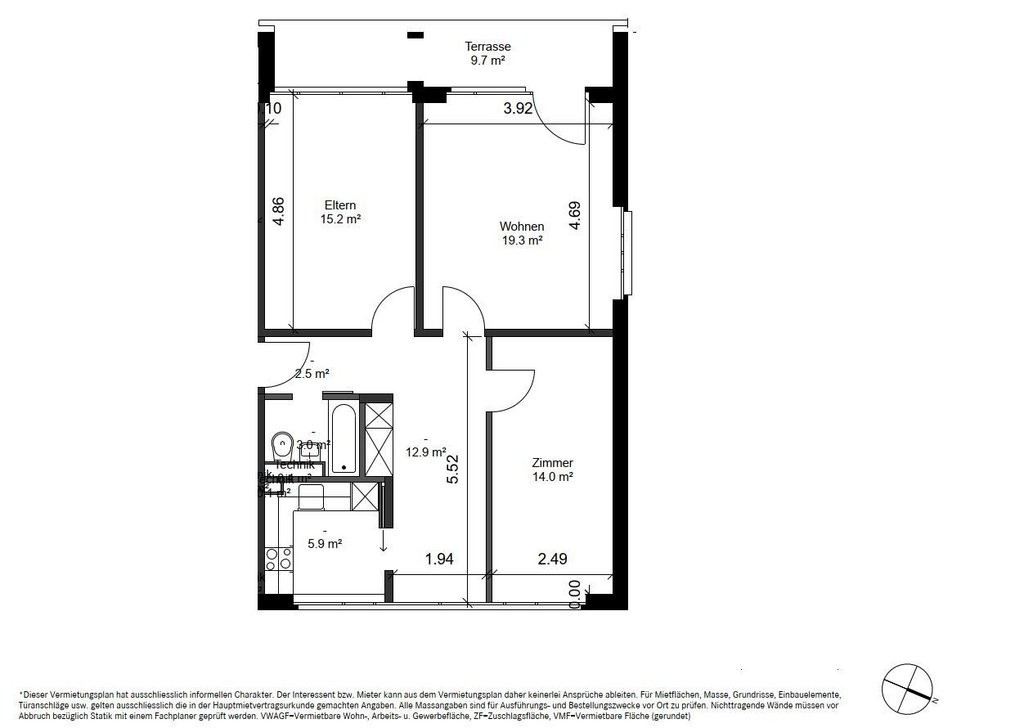 - Küche und Nasszelle mit pflegeleichtem Plattenboden