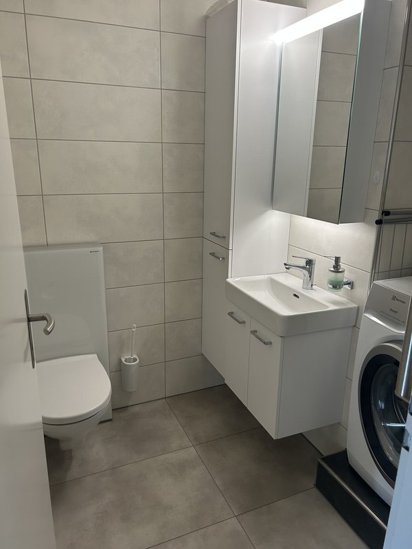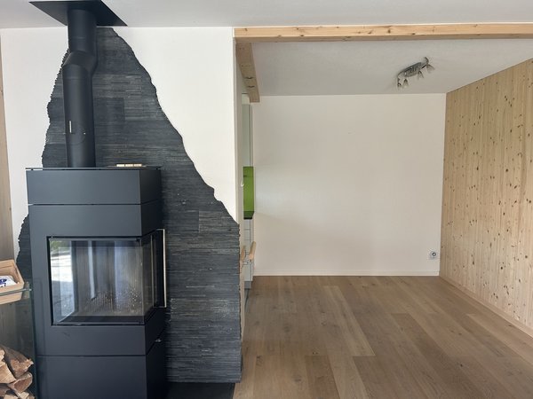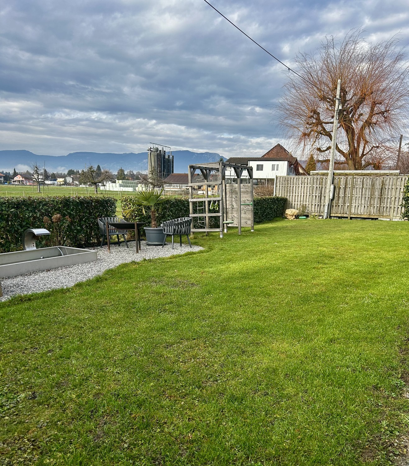 Zur Ausstattung gehören zwei Badezimmer, eine eigene Waschmaschine, ein Kombi-Steamer sowie ein gemütlicher Schwedenofen, der für eine warme Wohnatmosphäre sorgt. Der eigene Balkon mit direktem Zugang zum Garten lädt zum Verweilen ein und bietet eine schöne Aussicht.