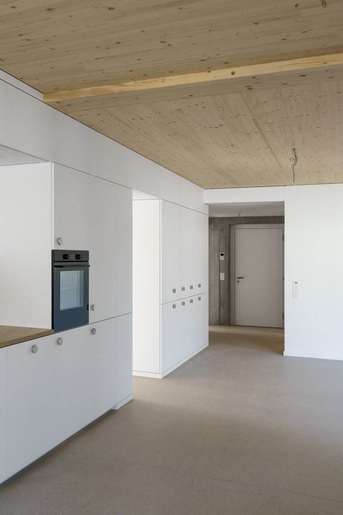 Die Liegenschaft wird zu 100 % aus Schweizer Holz gebaut, die verwendeten Materialien bleiben überwiegend roh belassen, was den natürlichen Charakter des Hauses unterstreicht.