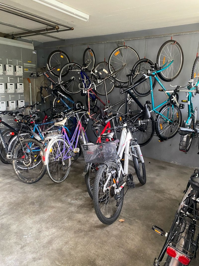 Bike storage: Secure wall mounted racks.