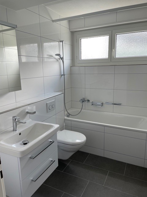 - Badezimmer mit Badewanne und Fenster