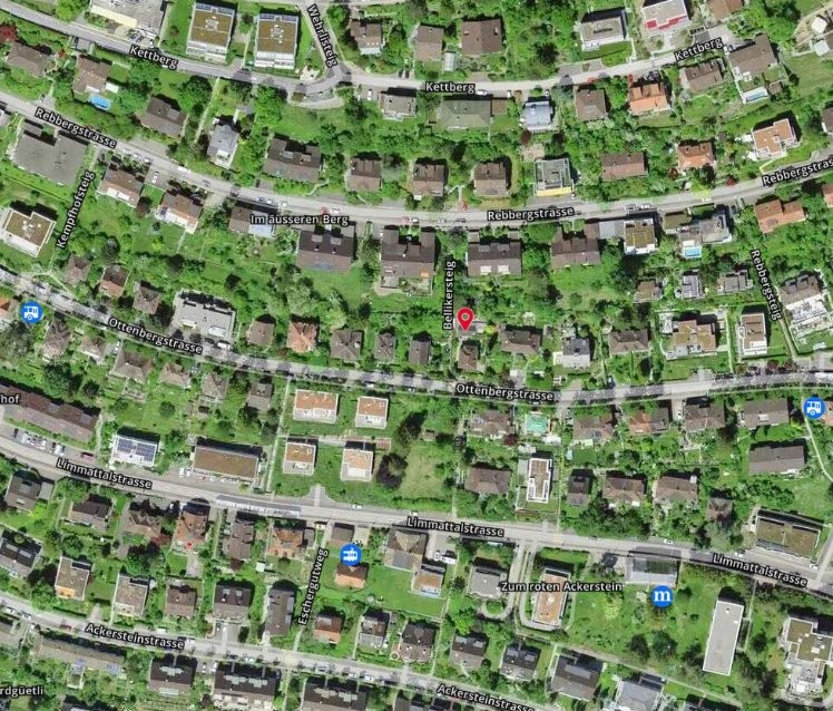 Die Liegenschaft befindet sich in einer ruhigen, sonnigen Wohngegend in Zürich-Höngg und ist dennoch sehr gut erschlossen. Die Bushaltestelle „Rebbergsteig“ erreichen Sie in nur 2 Gehminuten , die Tramhaltestelle „Alte Trotte“ in etwa 6 Gehminuten . Einkaufsmöglichkeiten für den täglichen Bedarf befinden sich in kurzer Gehdistanz. Das nahegelegene Kinderhaus Limmat macht die Lage besonders familienfreundlich.