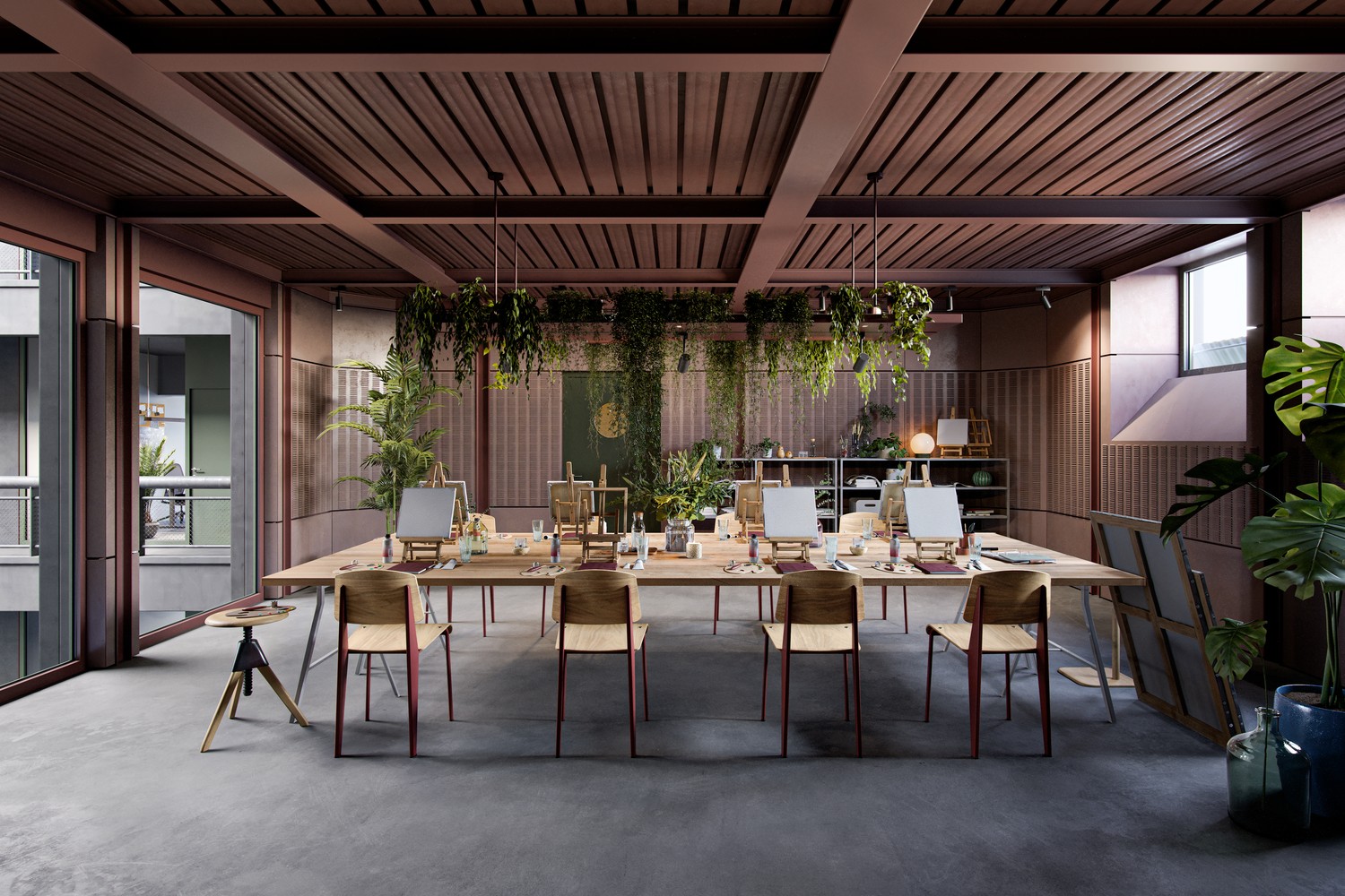 Die Mietfläche im Turm des 4. Obergeschosses bietet Einblicke ins belebte Atrium und überzeugt mit einer besonderen Atmosphäre, die Kreativität und Fokus fördert. Der Raum eignet sich ideal als vielseitiger Kursraum oder professionelles Studio – sei es für Video- und Podcast-Produktionen, Fotografie oder andere kreative Formate.