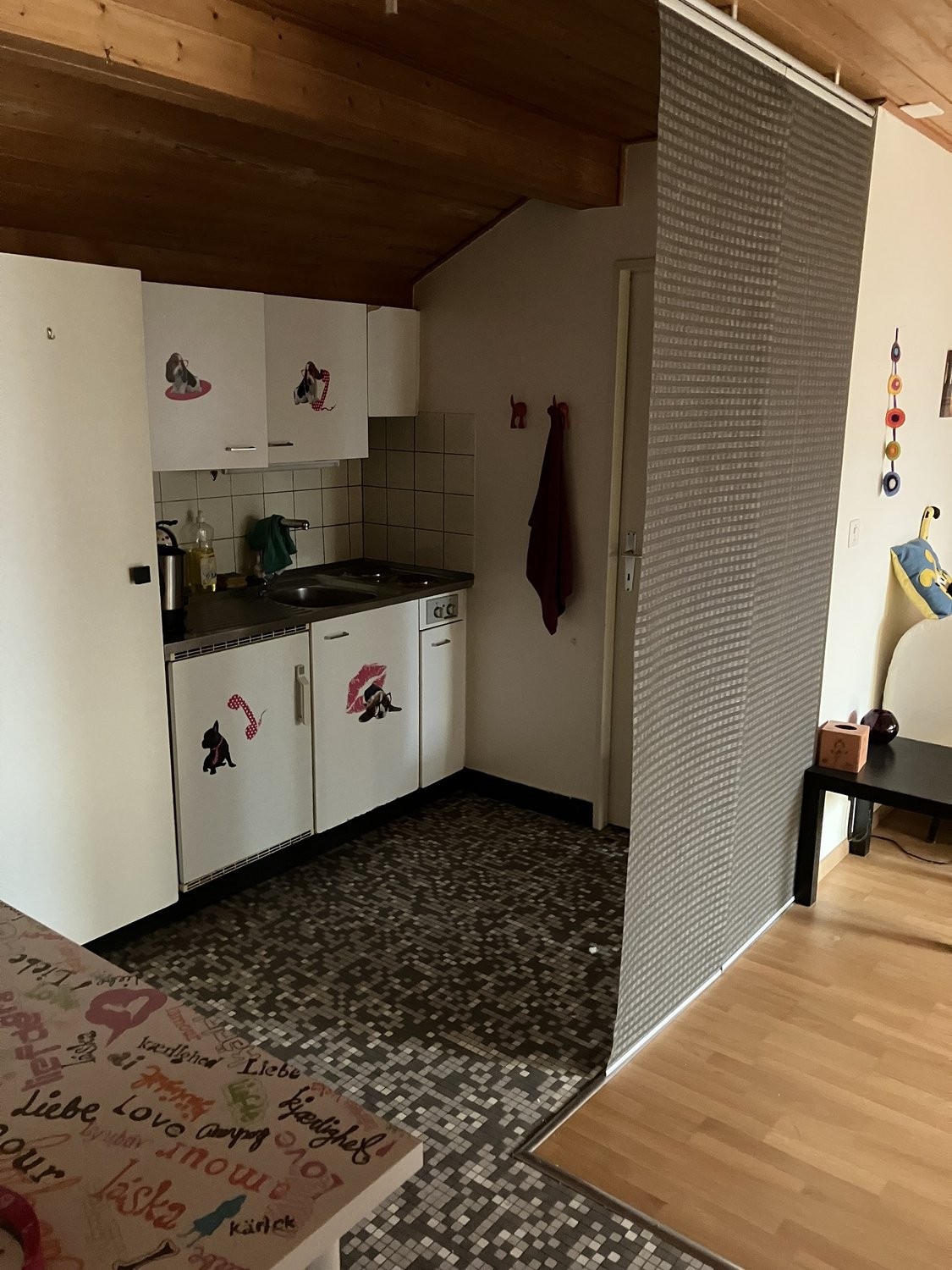 Petite cuisine agencée, 1 séjour/chambre, salle de bains/WC