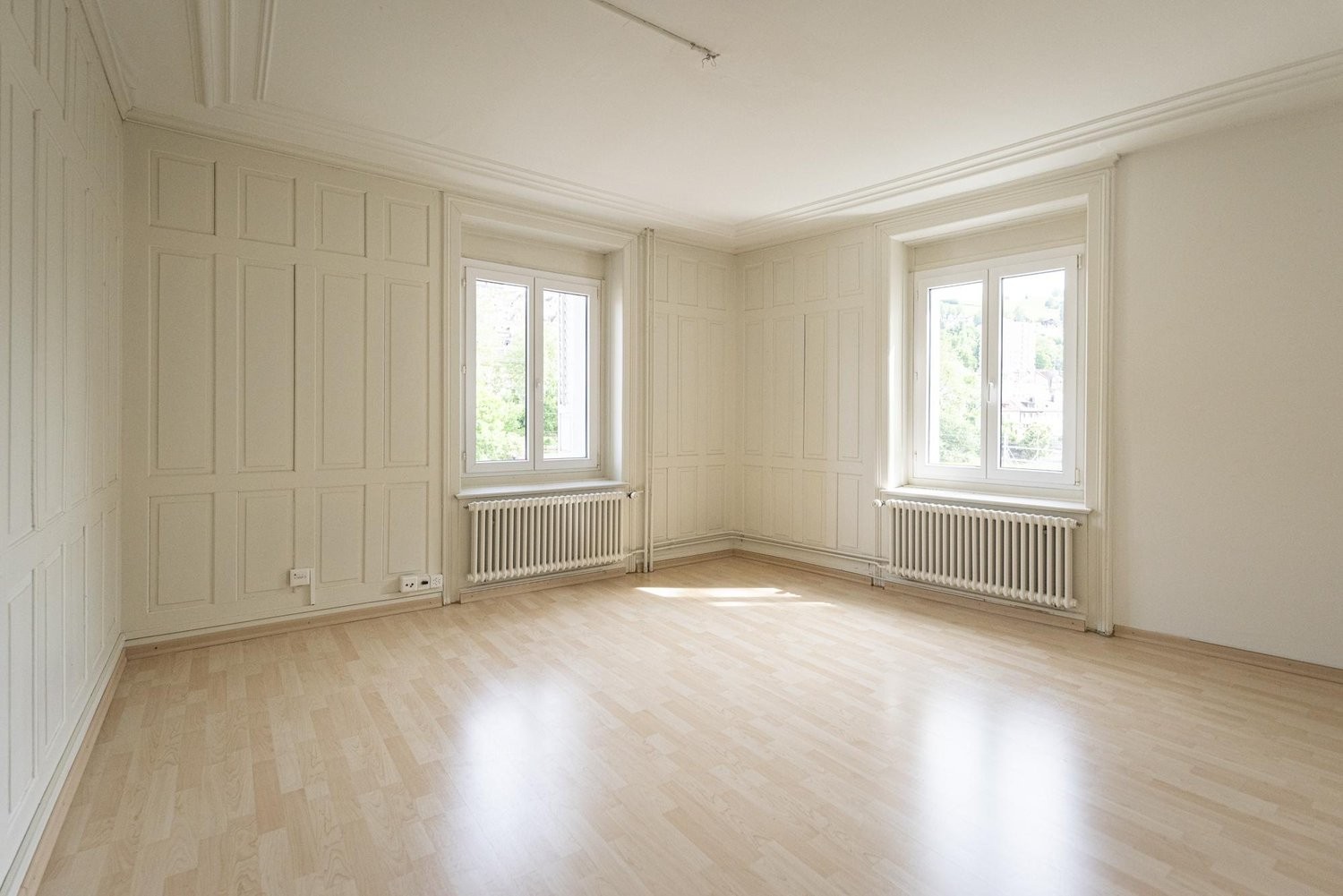 - Pflegeleichter Laminatboden in allen Wohnräumen