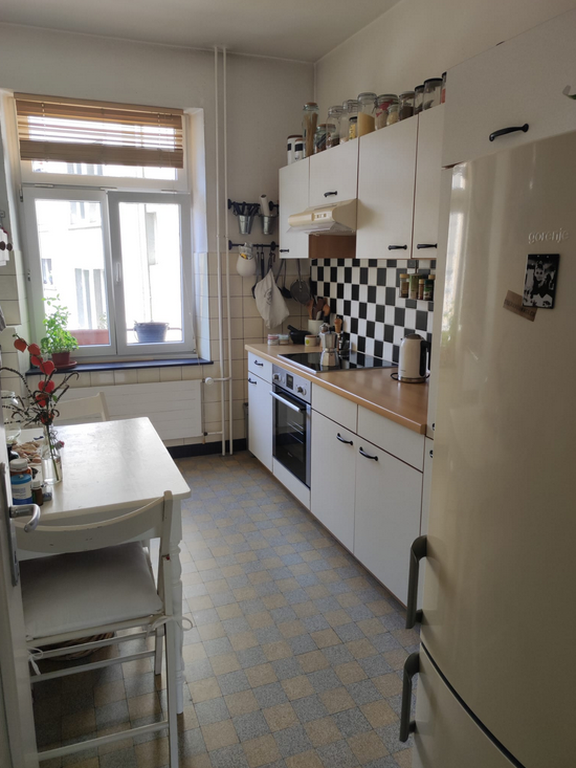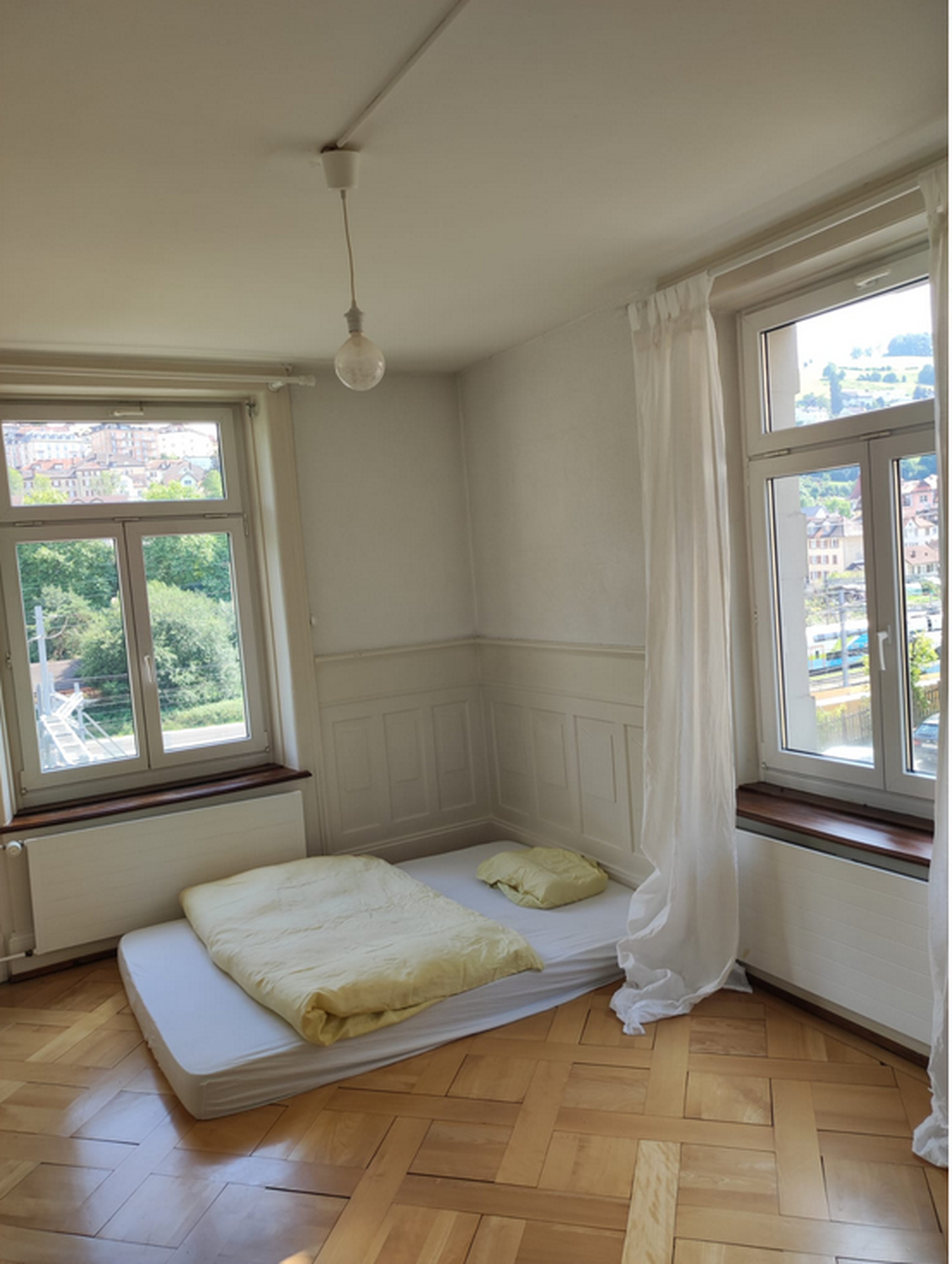 Das zu vermietende Zimmer ist gemütlich und durch die zwei Fenster sehr hell. Wie die ganze Wohnung verfügt es über einen tollen alten Parkettboden. Strom, Internet und TV ist im Preis bereits inbegriffen.