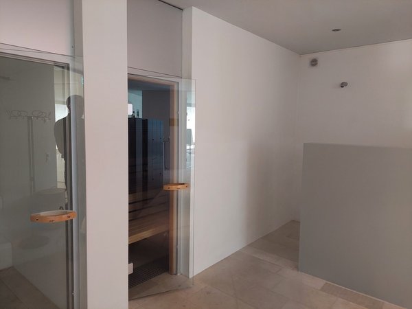 Angrenzend zu den Räumen befinden sich zwei Whirlpoolwannen, eine Dampfsauna und eine Sauna mit Ruheraum, welche in Kombination "Kosmetik/Erholung" mit genutzt werden darf.