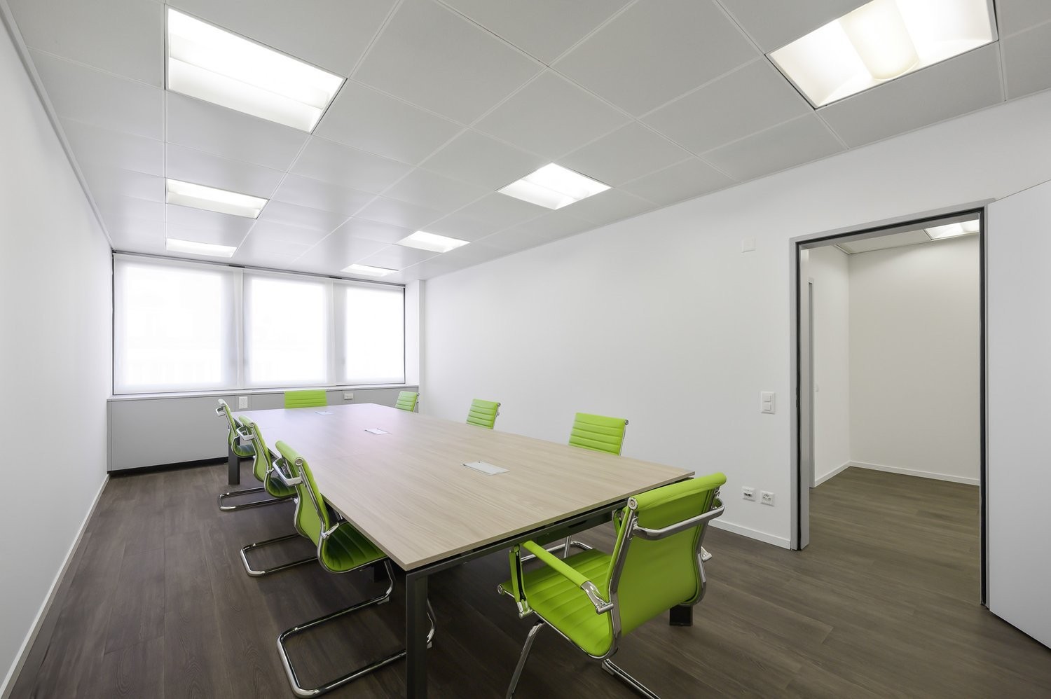 È composto da una grande sala reception, 4 uffici separati di diverse metrature, una sala riunioni e due bagni.