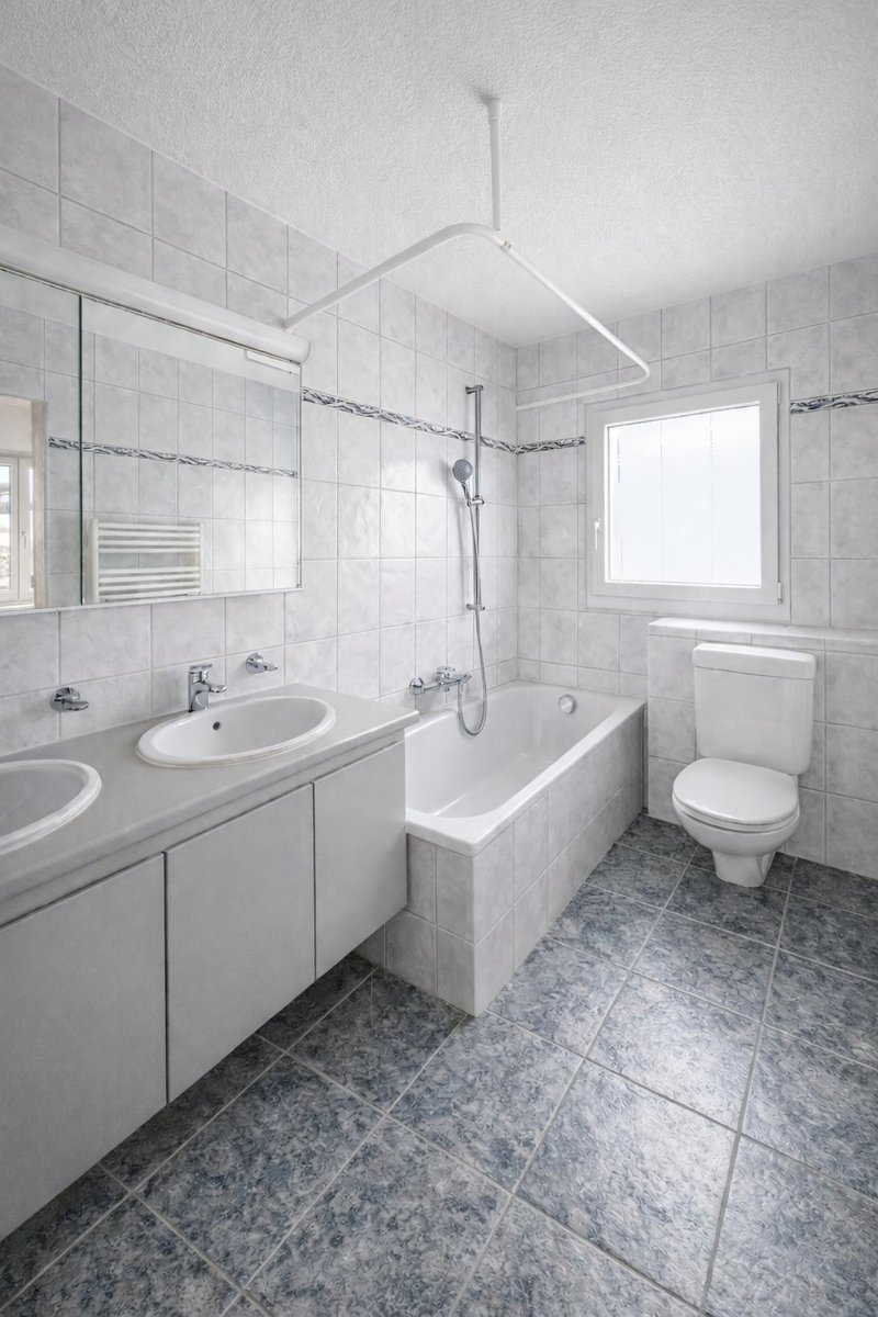 Lage und Umgebung: Das Haus liegt in einer ruhigen und sonnigen Gegend von Ostermundigen. Die Verkehrsanbindung ist hervorragend - der Bahnhof Ostermundigen ist nur 10 Gehminuten entfernt, die Bushaltestelle Zollgasse erreichen Sie in 4 Minuten. Denner-Supermarkt und die Moser-Apotheke jeweils in 5-6 Gehminuten. Familien schätzen die Nähe zur Schule Mösli, die in nur 5 Minuten zu Fuss erreichbar ist.