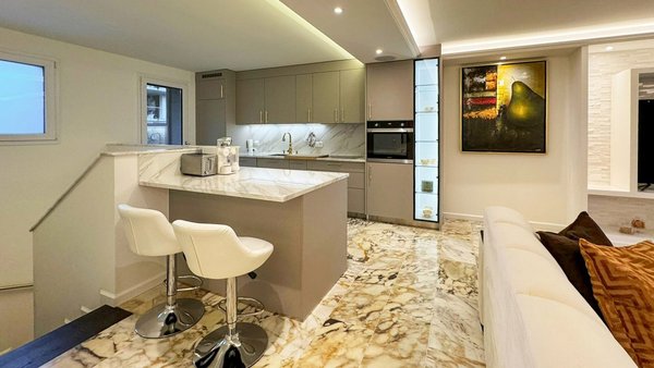 Salon avec une magnifique cheminée en marbre de Carrare.