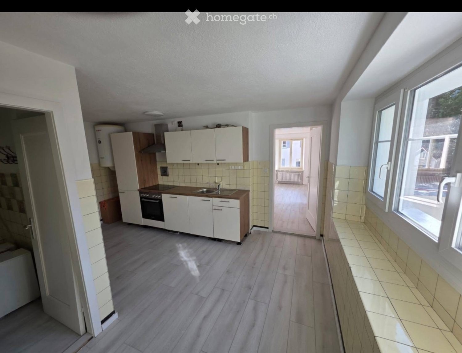 4 Zimmer Wohnung im 1.OG Sep. Küche und eine grosse Terrasse in der Wohnung integriert. Per Sofort zu haben für 1490.CHF Neues Boden, Neue Küche, Neu gestrichelt. Sehr Grosse Garten über 1500 m2