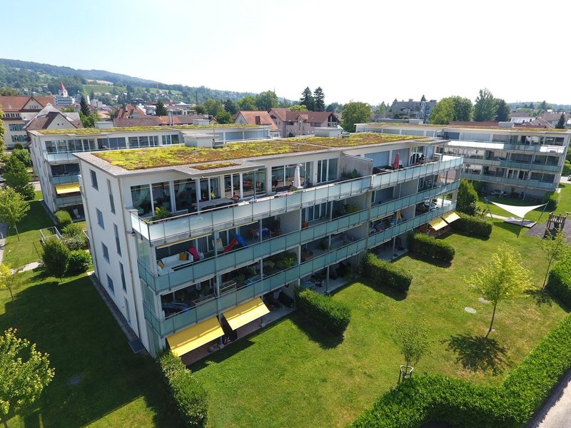 An zentraler und dennoch ruhiger Lage an der Paul-Reinhart-Strasse 5 in Weinfelden vermieten wir eine helle und grosszügige 5.5-Zimmer-Attikawohnung im 3. Obergeschoss. Die Dachwohnung überzeugt durch ihre durchdachte Raumaufteilung, den hohen Wohnkomfort sowie eine schöne Aussicht. Der Lift bringt Sie bequem bis zur Wohnung, wodurch ein hindernisfreier Zugang gewährleistet ist. Der offene Wohn- und Essbereich schafft eine angenehme Wohnatmosphäre und bietet direkten Zugang zum Balkon beziehungsweise zur Terrasse, welche zum Verweilen und Geniessen einlädt.