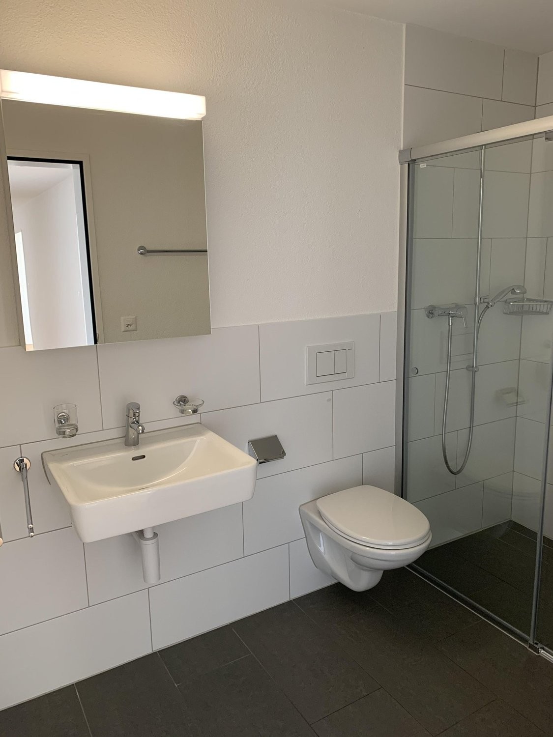 Die Wohnung verfügt über zwei Nasszellen mit jeweils einer Dusche und einer Badewanne sowie ein separates WC und eignet sich ideal für Familien oder Paare mit erhöhtem Platzbedarf. Für zusätzlichen Komfort sorgen eine eigene Waschmaschine sowie ein eigener Tumbler direkt in der Wohnung. Ein Abstellraum sowie ein Kellerabteil bieten praktischen Stauraum. Die moderne Küche ist mit einem Geschirrspüler ausgestattet.