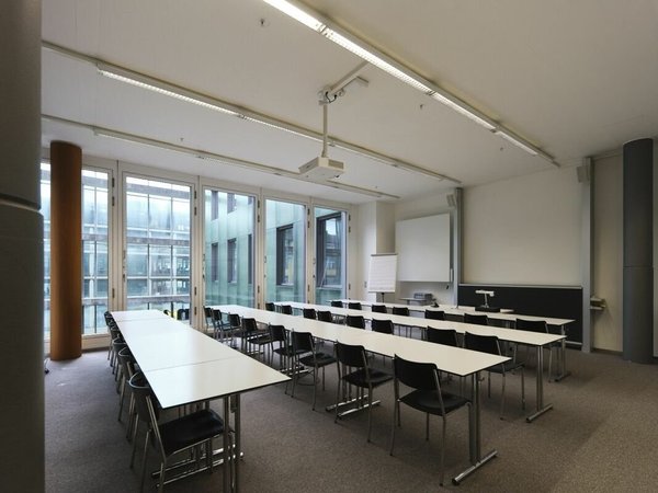 Raumaufteilungen wie Klassenzimmer, Büros und Sitzungszimmer, Fokusräume, ausgebaute Nasszellen und eine Kantine/Küche für den allseitigen Gebrauch im 6. Obergeschoss.